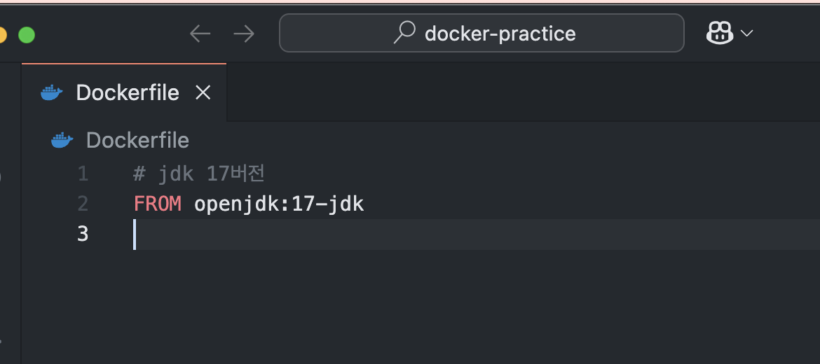 Dockerfile에 FROM 으로 jdk17버전을 작성한다.