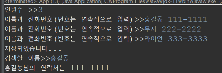 System.out.print("μ΄λ¦κ³Ό μ νλ²νΈ(λ²νΈλ μ°μμ μΌλ‘ μ