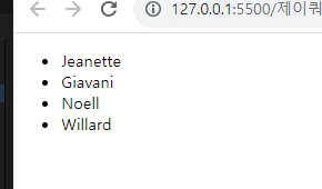 $("ul#users").append(`<li>${user.first_name}</li>`); //๋ฒกํฑ ๋ฐ์ดํ ์จ์ผํจ